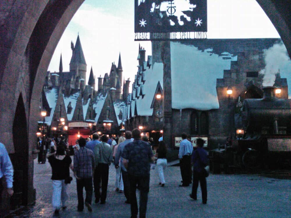 - Hogsmeade Village storefronts contain interactive elements that include the Quick Quotes Quill and plants springing to life as you pass by.
