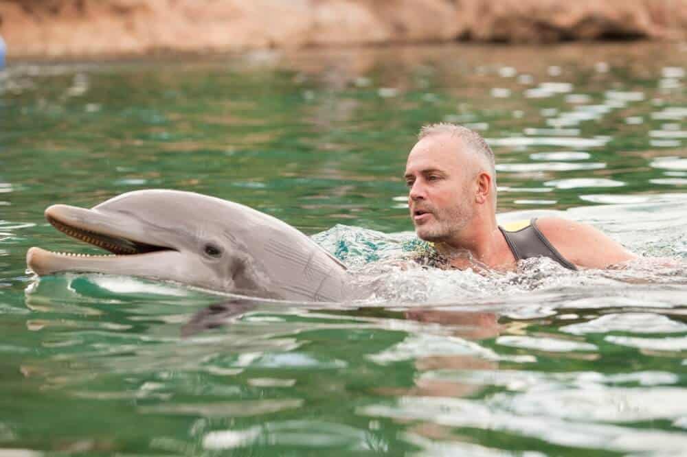 Discovery Cove in Orlando is an all-inclusive day of adventure where guests can swim with dolphins and rays, handfeed exotic birds and relax on white sand beaches.
