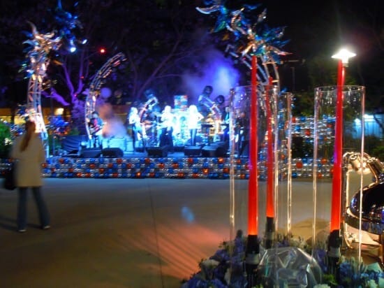 Disney certainly knows how to throw a party. On the evening of June 2, 2011, special guests and press were invited to attend a nighttime bash at the Disneyland Hotel, set around its newly-renovated retro pool area. For two and a half hours, attendees enjoyed food, drinks, live entertainment, and character appearances all in honor of the launch of Disneyland’s Soundsational Summer, The Little Mermaid ride, Star Tours 3D, and Mickey’s Soundsational Parade.