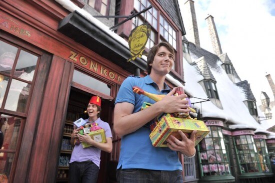 Oliver and James Phelps, who portray the mischievous Weasley brothers, George and Fred respectively, in the Harry Potter films stopped into Zonko’s in Hogsmeade at The Wizarding World of Harry Potter while visiting Universal Orlando Resort on Thursday, June 9, 2011.