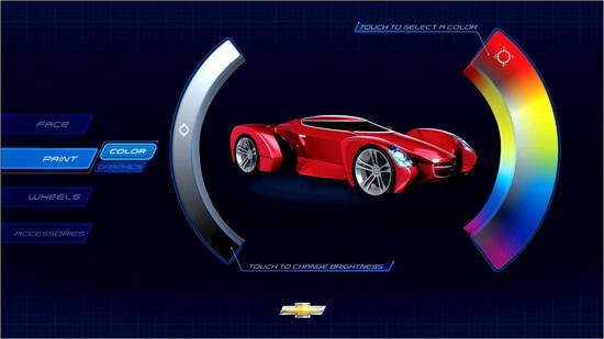Throughout the attraction, visuals are inspired by Chevrolet’s vehicle design as seen in architectural elements and in the interactive displays; speed forms and concept vehicle displays, like EN-V and Miray, provide a glimpse into the future of Chevrolet design. Radio frequency technology (RFID) allows guests to take their unique vehicle design with them through the entire ride.