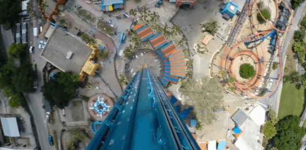 USA Today has been given a first look at the anxiety-inducing view from the top of the 300+ foot tall tower just as the ride’s seats tilt 90-degrees to face directly downward before plummeting to the bottom.