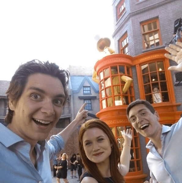 Weasley siblings James Phelps, Oliver Phelps and Bonnie Wright are sharing photos via Twitter and on Universal’s Instagram from within the new area, including the Knight Bus, Florean Fortescue’s Ice Cream Parlour, the Leaky Cauldron, Bourgin & Burkes, Hogwarts Express stations, and – of course, Weasley’s Wizard Wheezes.