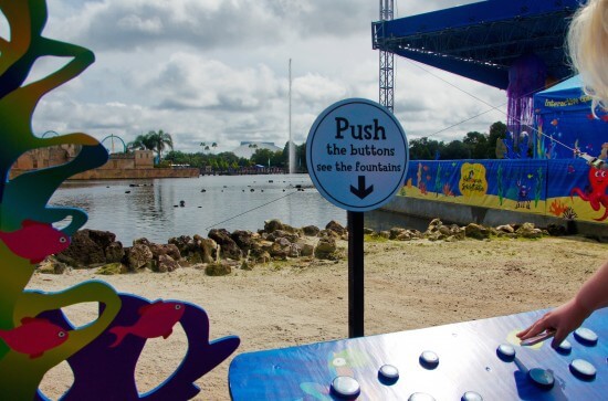 There is a new interactive area where you can push buttons to control the fountains out on the lake.