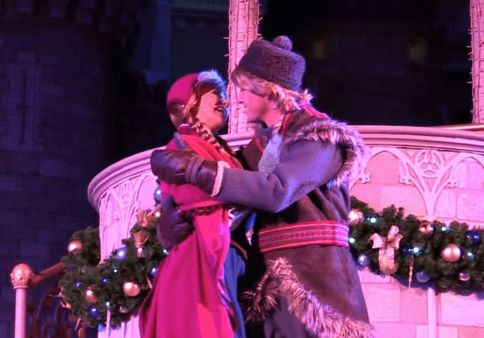 Anna and Kristoff share a few choice moments, as Anna almost refers to him as her boyfriend but stops short, simply calling him her Kristoff. But they definitely stay close throughout the performance.