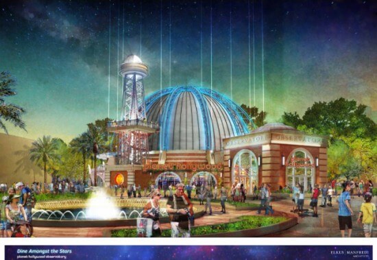 As part of the transition from Downtown Disney to Disney Springs, the Planet Hollywood restaurant is becoming a “four-story stargazing observatory” called Planet Hollywood Observatory.