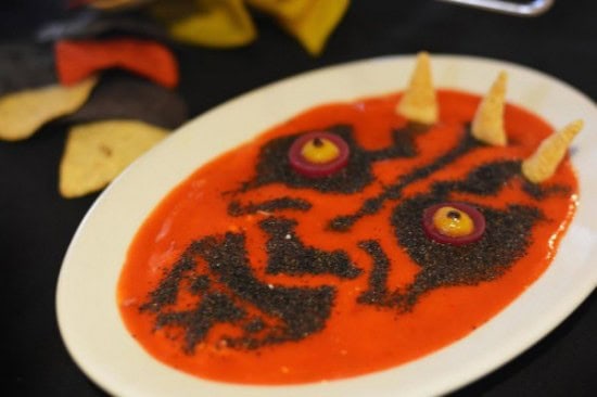 Yoda Key Lime CakeSlider Sampler featuring “The Sith” barbecue-braised brisket with cole slaw and “The Jedi” with barbecued pulled chicken with arugulaChips & Sith – hummus with red pepper coulis, black sesame dust, and corn tortilla chipsTrio of Thermal Detonators – spicy pork wings topped with spicy piquillo-pepper sauce and slawPilot’s Pomme Frites – these are tossed with parmesan cheese, garlic and parsley with a garlic aioli for dippingLightsaber Bites – hand-dipped corn-battered knockwurst sausages with house-made chips and mustard dipping sauceEnsalada Naboo – seared chicken breast, bibb lettuce, grape tomatoes, watermelon radish, almond frica, and a parmesan-peppercorn ranch dressingFruit and Cheese “Sabers” featuring Tillamook cheddar, Brie, goat cheese, pickled vegetables, crostini, cheddar crackers, blueberries, raspberries, honeydew melon, strawberry, olives and gherkinsTrio of Star Wars mini cupcakes, including Mini Darth Vader (chocolate-peanut butter), Mini Yoda (chocolate-hazelnut), and Mini Jabba the Hutt (salted caramel latte) served in the Han Solo Carbonite Souvenir BoxThe Dark Fried – Chicken and Darth Vader waffles served with maple syrup and sweet barbecue sauce