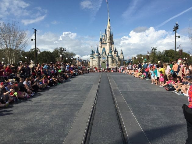 Sometimes, there is a section along the rope that is “taped off” for the Disney VIP tour groups, but there is still usually plenty of room for other guests who get there by 3:00. If you arrive to the area and don’t see a “front row” spot, there is one other trick that I’m going to share. If the ropes are up, you will still find an opening that is being used as a walkway until right before the parade arrives. I recommend standing right next to this walkway, directly behind any front row guests that may be there. When the front of the parade gets close, they will rope off the walkway, and you can walk right up to it, giving yourself a front row spot. Again, you are talking about a minimal wait for an incredible parade view!