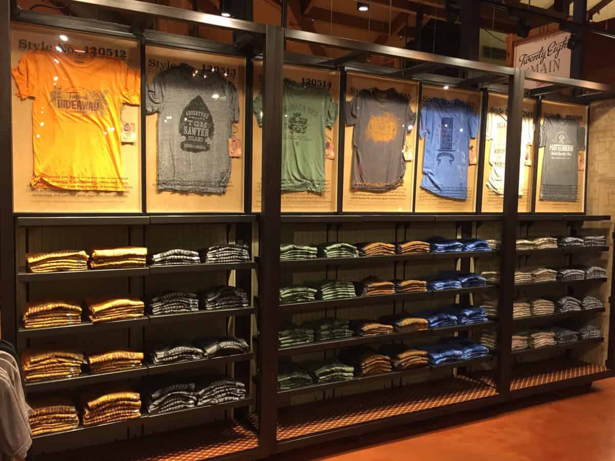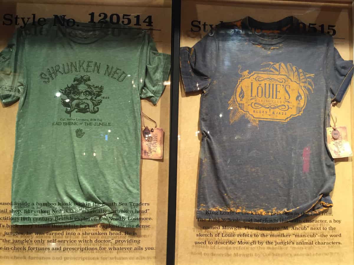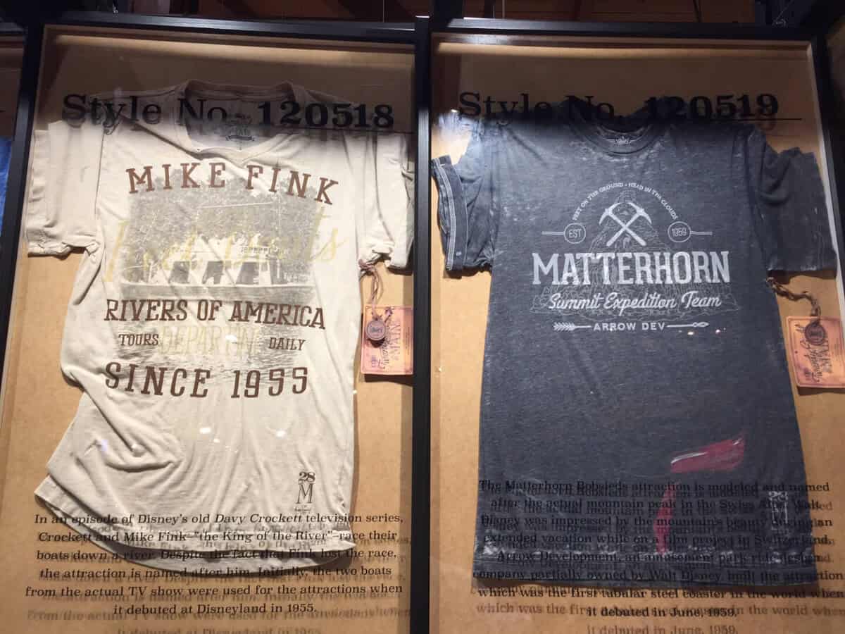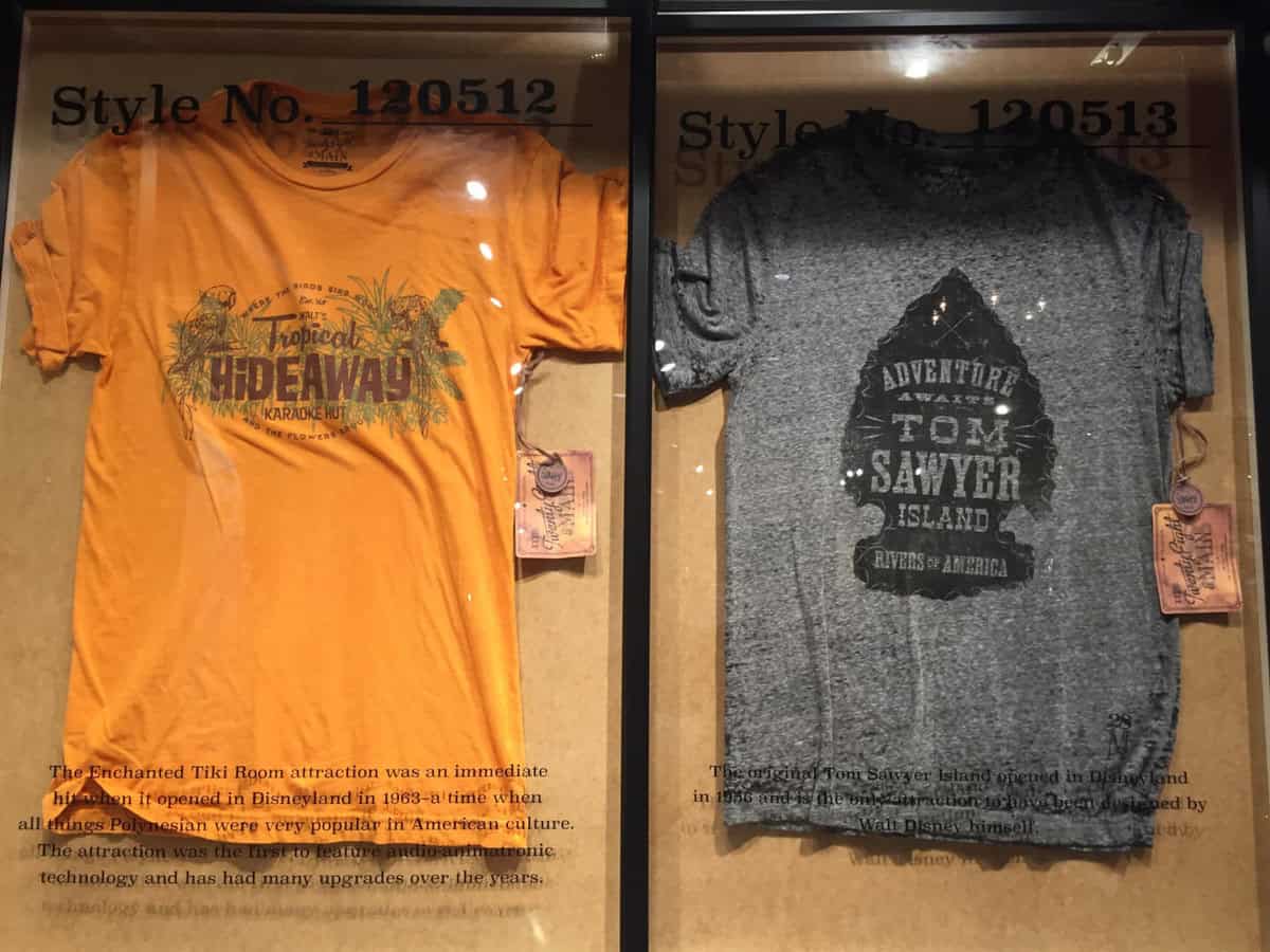 A heavy emphasis on Walt, the new store is adorned with the Walt Disney family crest; the same one you’ll find on Sleeping Beauty Castle at Disneyland and Cinderella Castle at the Magic Kingdom in Orlando. Rich woods and urban elements style the space as vintage feeling pieces grab your attention everywhere your eyes fall. Especially with the attraction inspired shirts.