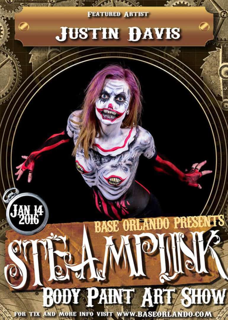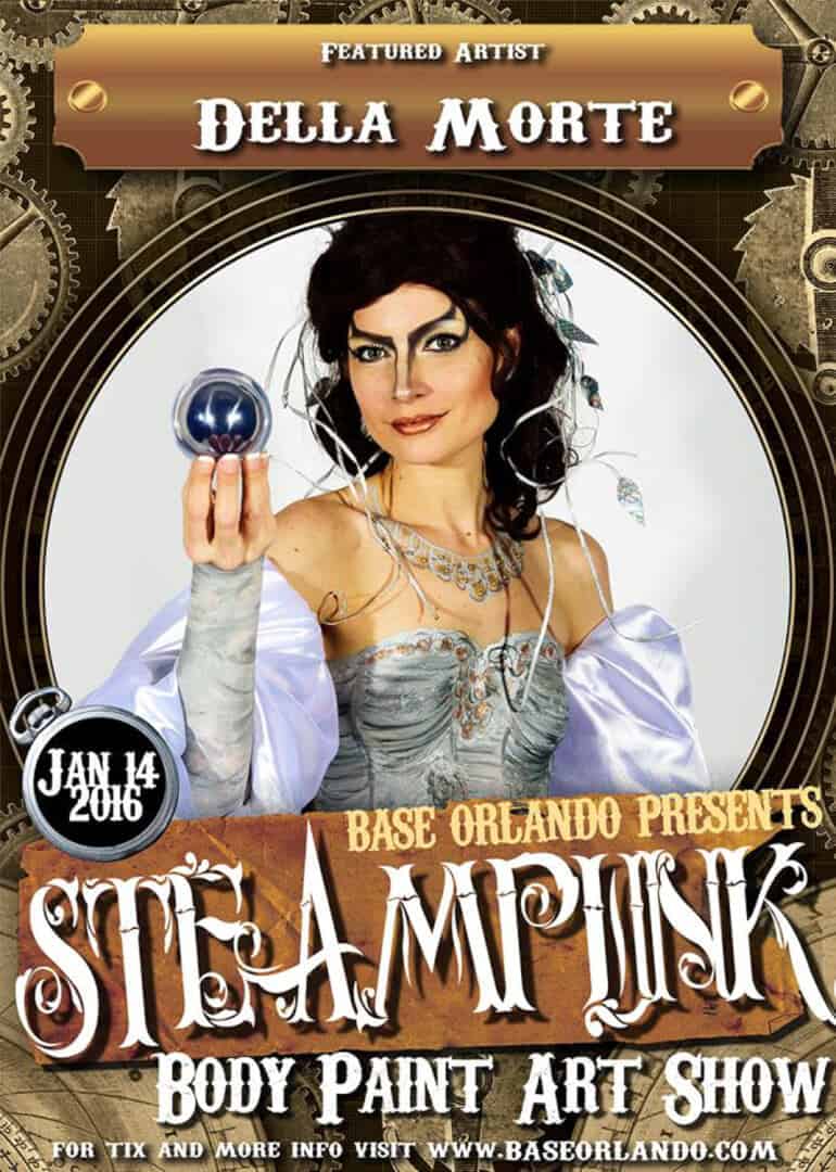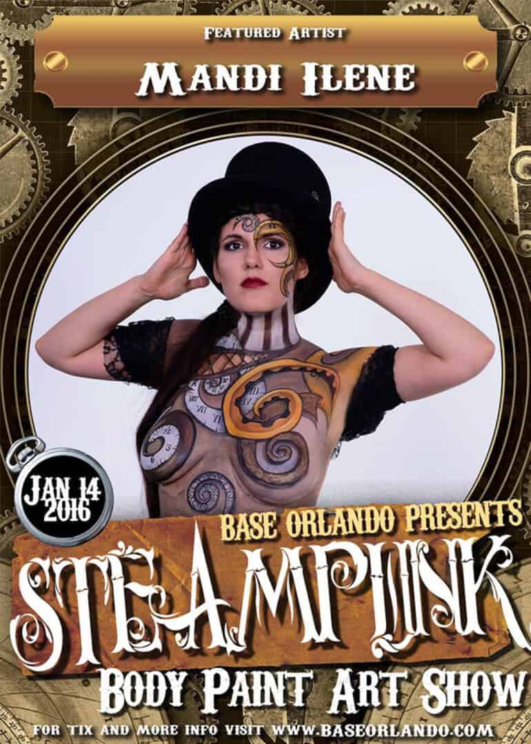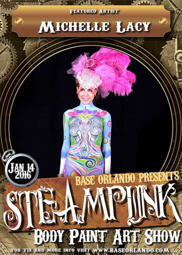 Putting the STEAM in steampunk – Earlier this month, several Orlando steampunk enthusiasts traded gears for grease paints during a special event at the Majestic Event Center. BASE brought the beautiful barely bare bodies to be transformed into walking works of art for the night. Models were paired with make-up artists for a night of eye candy, vendors and a performance by Kaddy Laq of Corsets and Cuties.