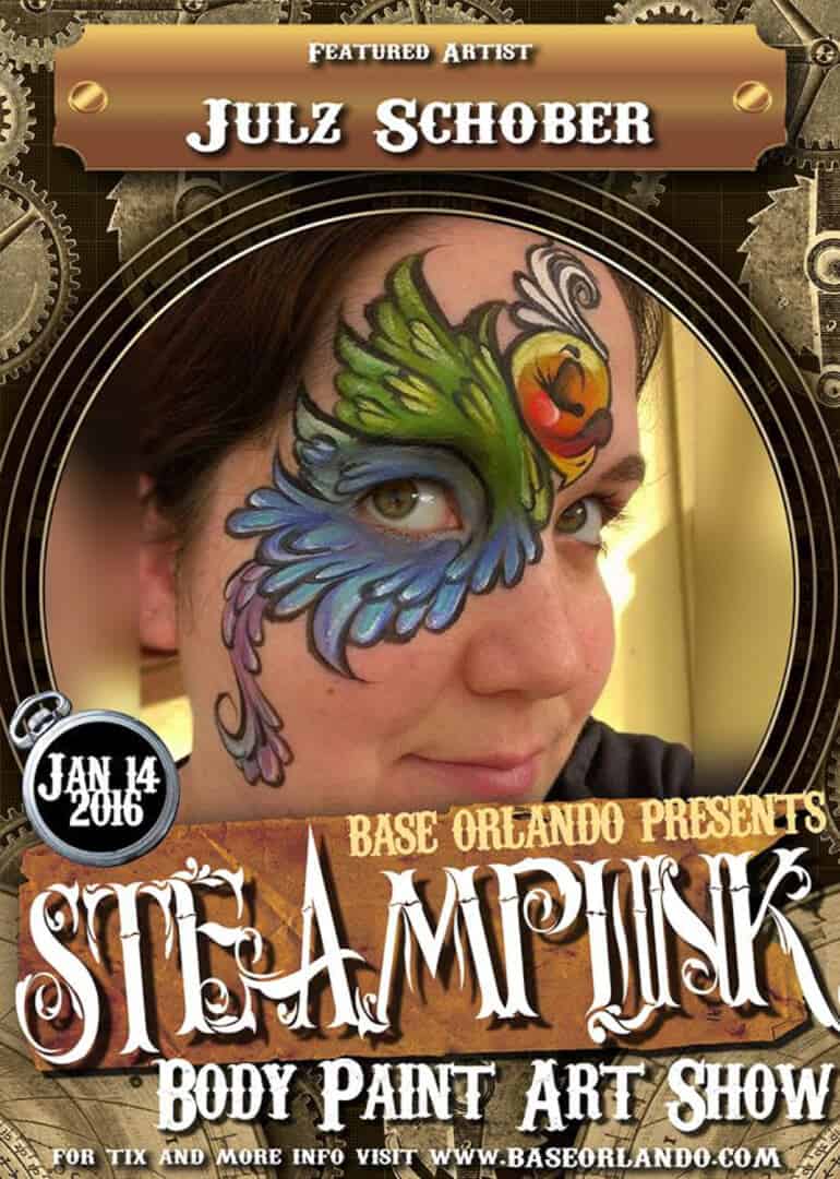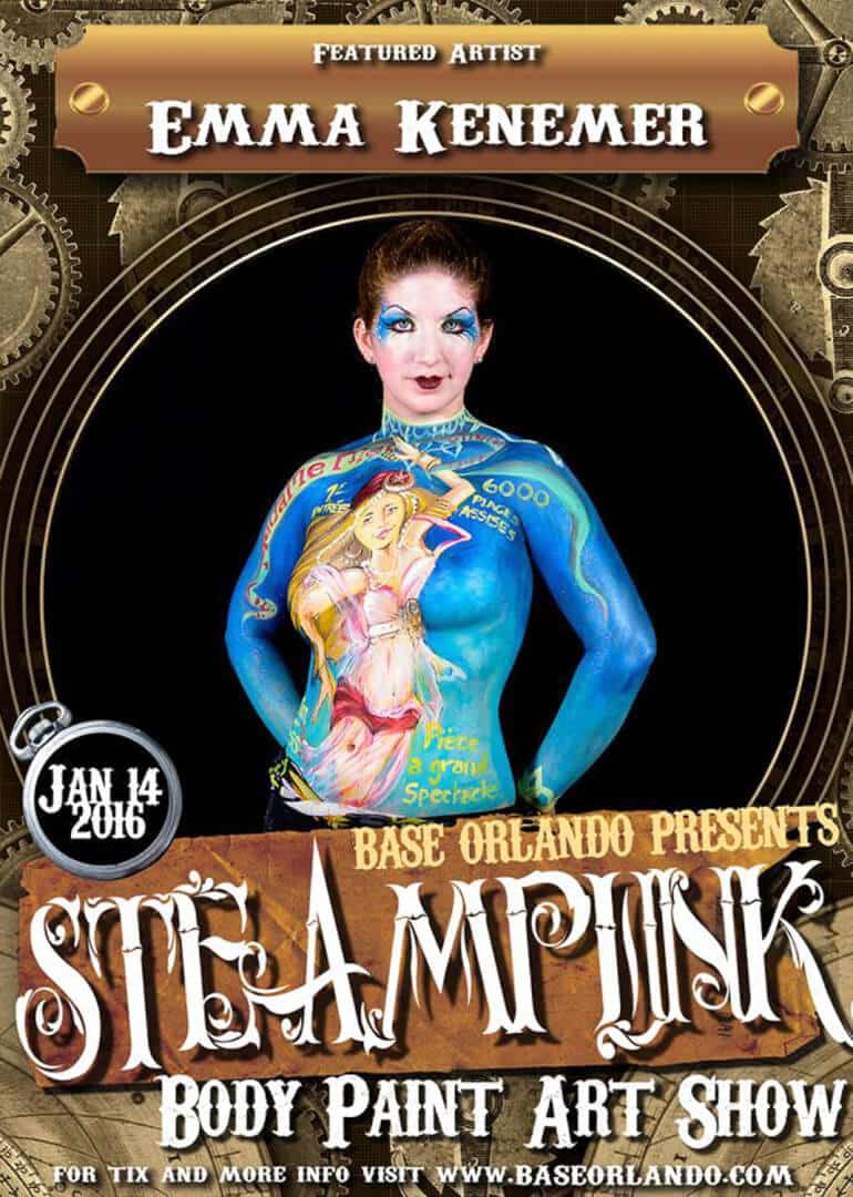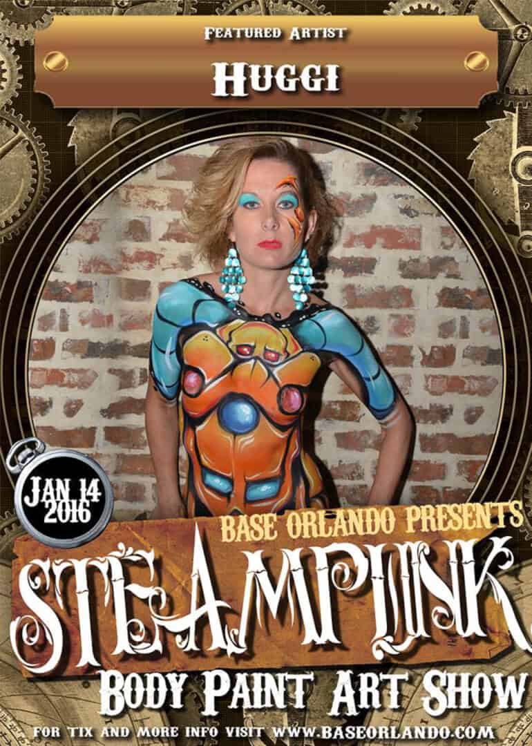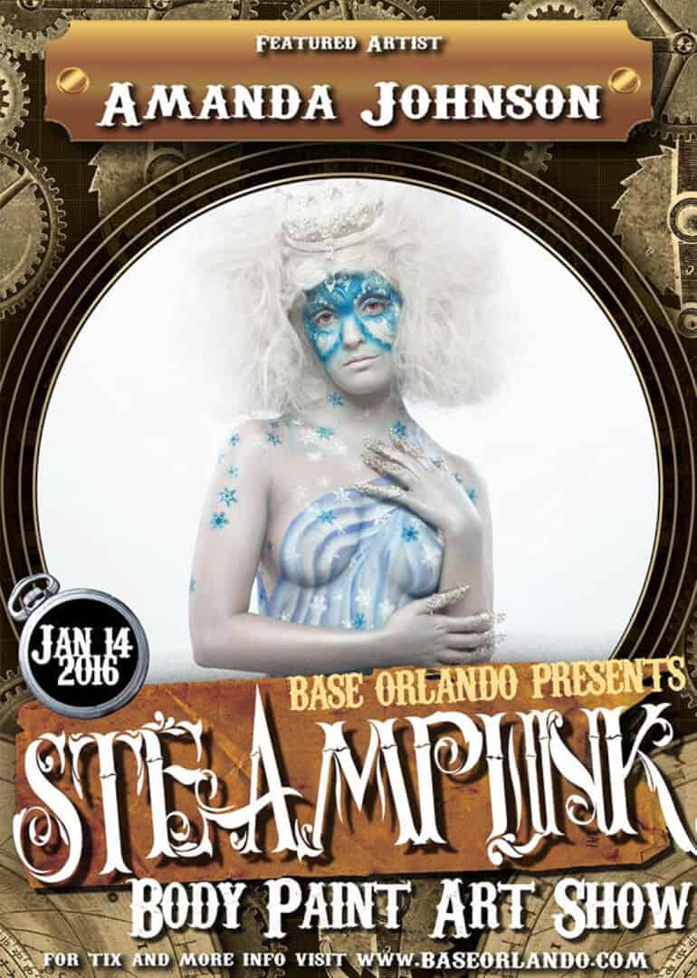Putting the STEAM in steampunk – Earlier this month, several Orlando steampunk enthusiasts traded gears for grease paints during a special event at the Majestic Event Center. BASE brought the beautiful barely bare bodies to be transformed into walking works of art for the night. Models were paired with make-up artists for a night of eye candy, vendors and a performance by Kaddy Laq of Corsets and Cuties.