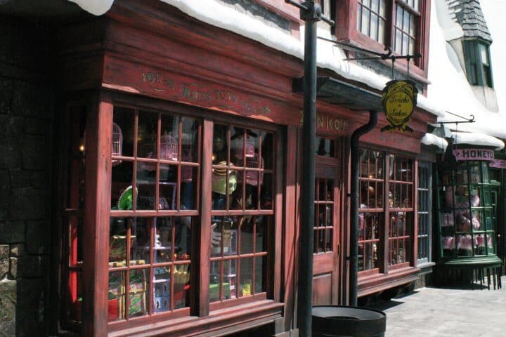Though it was part of the opening experience, the small joke shop was closed when Diagon Alley appeared at Universal Studios Orlando. Honeydukes took over the entire space.