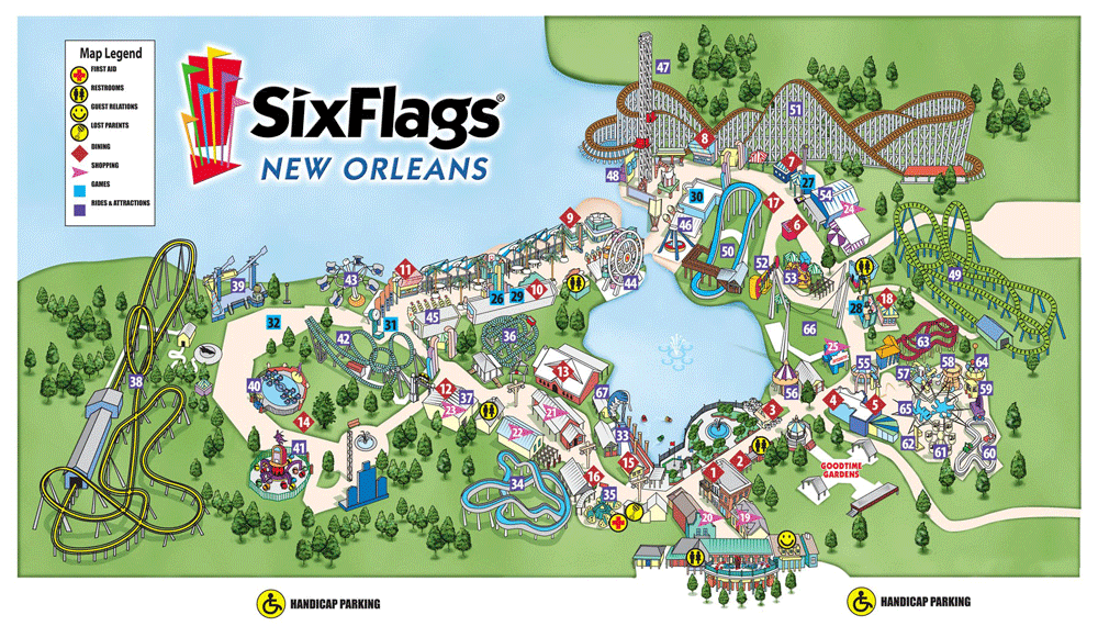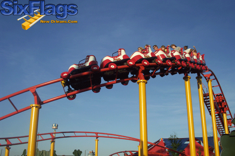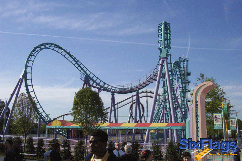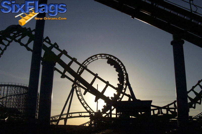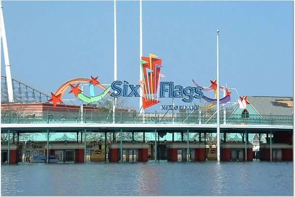With the mascot Mr. Six and the motto, “It’s Playtime!” Six Flags brought in new licensed attractions such as the inverted coaster Batman Ride (2003). Plans for expanding Six Flags New Orleans included adding a water park. jaUnfortunately those plans along with the park’s very existence were brought to a screeching halt when Hurricane Katrina devastated the region on August 26, 2005.