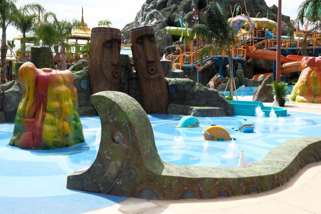 The Tot Tiki Reef is great for even the smallest guests who visit the park. Here, kids can experience splashy slides, a tot-sized water volcano and an array of tikis with spraying fountains. The reef also features whales that spray and sing.