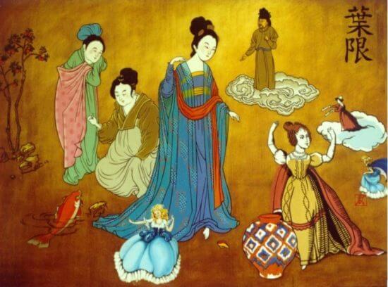 The aspect of sinister siblings comes into play in the 860 AD Chinese version “Ye Xian.”  Using the magical bones of her reincarnated mother-a fish, which was murdered by her stepmother and stepsister, Ye Xian crafts a fancy dress for the New Year Festival. When she is spotted by them at the party, she loses her slipper. Rescue comes from the King, having found the shoe, who falls in love with Ye Xian and takes her away from the cruel stepmother and stepsister.