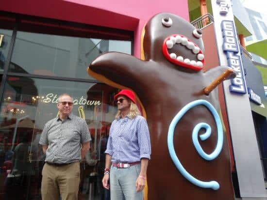 Portland-based owners Tres Shannon and Kenneth “Cat Daddy” Pogson were on hand for this morning’s media event, which welcomed press to try out many of Voodoo Doughnut’s famous unique varieties. The pair also talked about why the shop is a great fit for CityWalk.