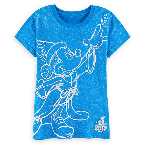 Reach for the stars with this classic Sorcerer Mickey tee for women. The bright, sparkling blue fabric and simple design make it a staple shirt for any Disney wardrobe. It also has 2017 stamped on the bottom, so it’s a wonderful gift to remember a Disney vacation you may have taken this year. It’s available now for $27.74.