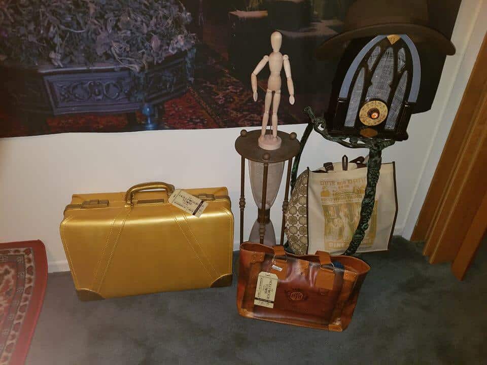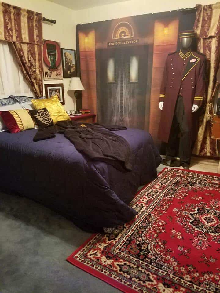 The bigger pieces in the room are two Topher Adam’s backdrops, period luggage and a creepy carpet that appears to have come from the hotel’s library. However, the piece that brings it all together is a faceless bellhop that stands in full formal hotel regalia, complete with long coat and pillbox hat and ready to guide visitors into the spooky service elevator.