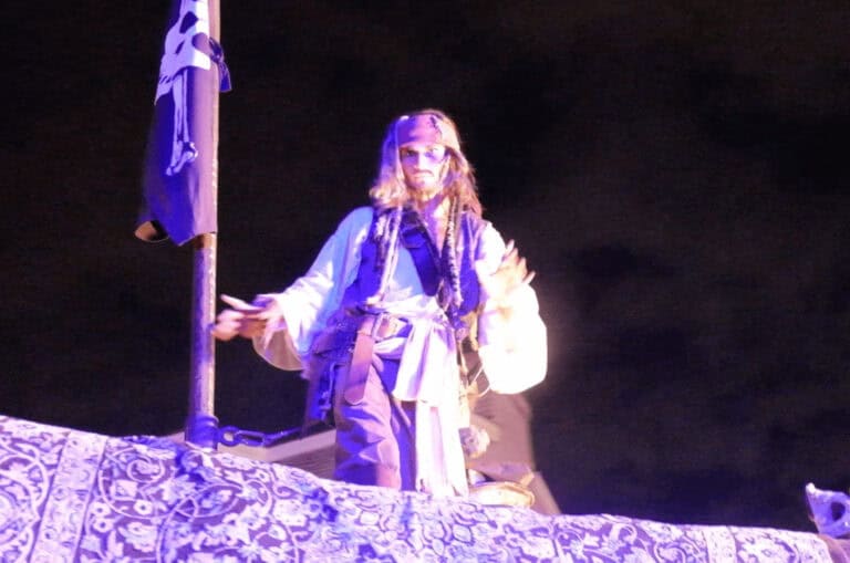 Magic Kingdom’s Haunted Mansion ride also gets a spotlight in the show. The Haunted Mansion floats are particularly memorable – one of the floats even features the famous Hitchhiking Ghosts, which glow as they float by.