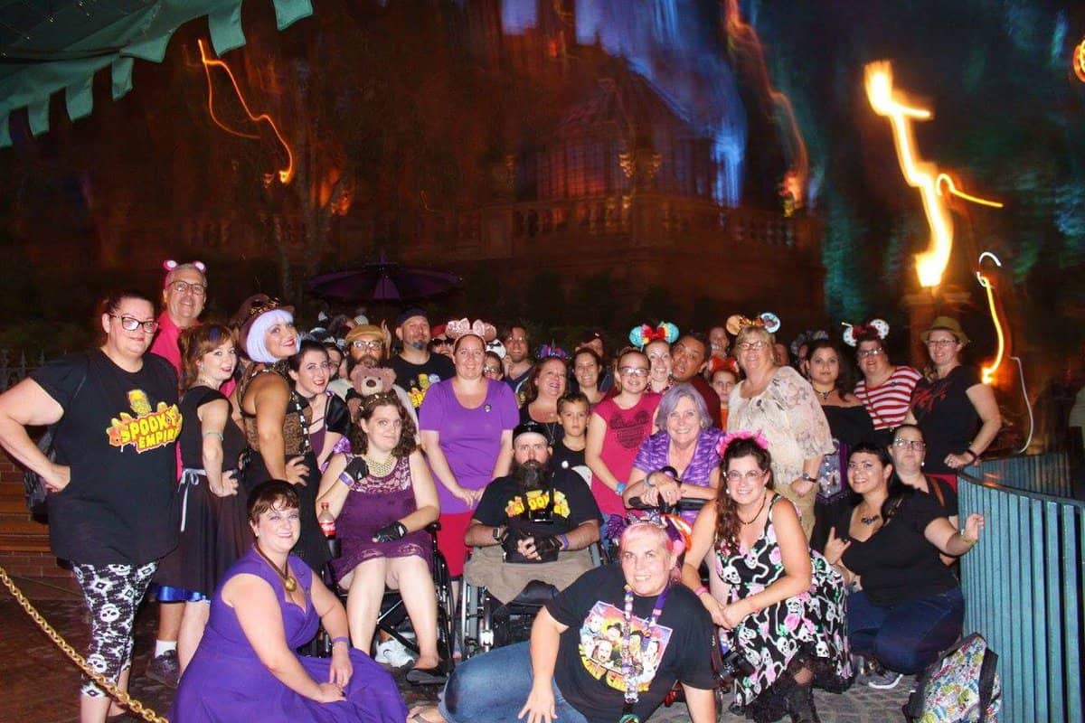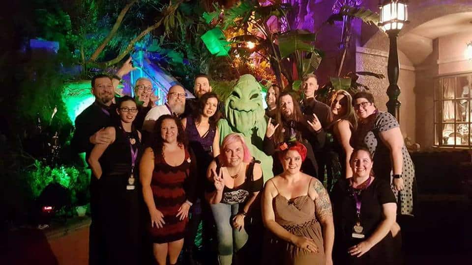 Encouraged to exhibit their Disney (or horror) bounding best, guests gathered for meet-ups at the Magic Kingdom on Saturday afternoon. Amid the photo-ops and frolicking in the park, a surreal surprise enchanted one event guest in particular. 999 happy haunts witnessed a wedding proposal (and acceptance). This magical moment manifested, appropriately, within the stretch room of the Haunted Mansion. Congratulations!