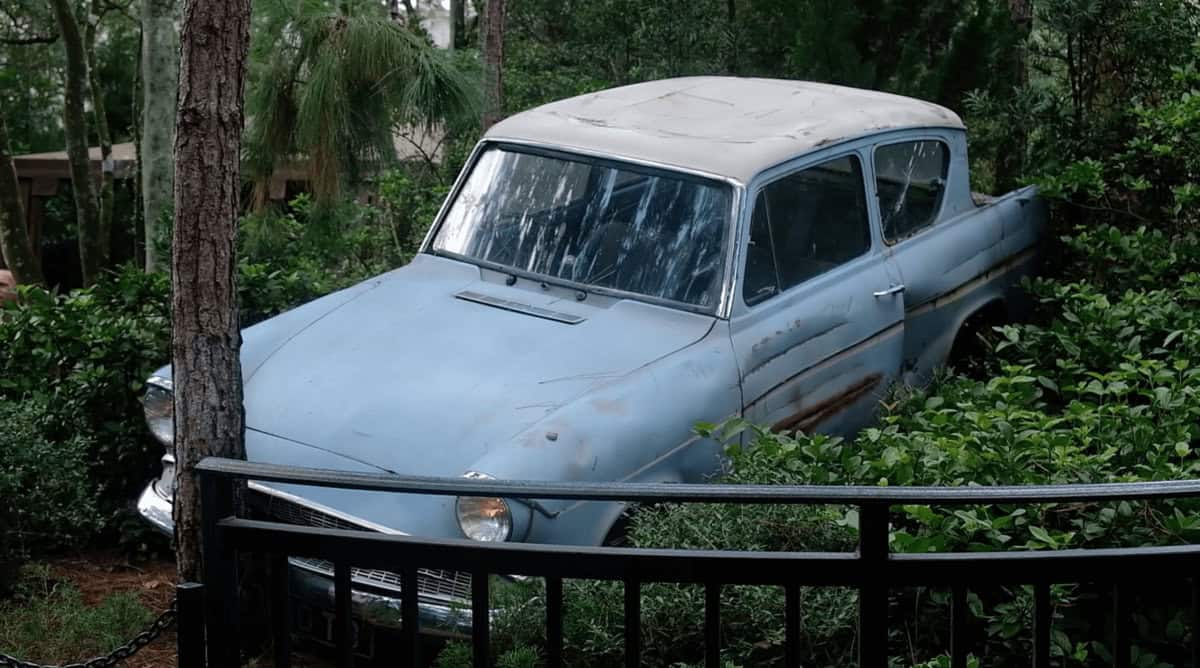 This path would lead to Weasleys’ crashed flying Ford Anglia in a bush next to the queue’s walk path.