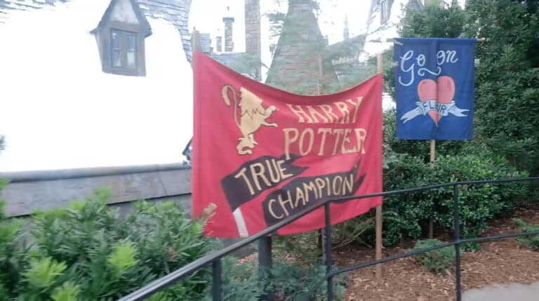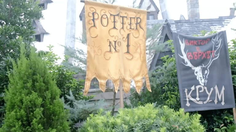 When guests would enter the queue they would be taken past several banners for the Triwizard Tournament.