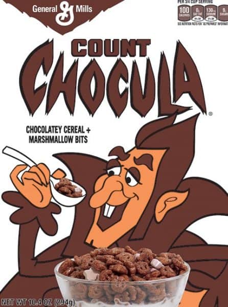 Count Chocula, voiced by Larry Kenney (Sonny/Cocoa Puffs cereal) was inspired by Bella Lugosi’s Dracula (right down to the accent). With chocolate flavored corn cereal and marshmallows, Count Chocula cereal is almost like having a candy bar for breakfast. It was the first cereal to feature this fine flavor.