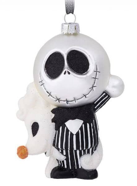 Jack and his paranormal pal are given a more traditional holiday décor design in this glass Christmas Tree ornament.