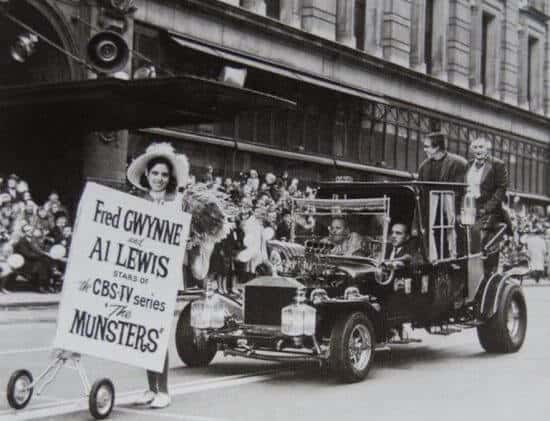 Even monsters have their place in the Holidays – Herman and Grandpa from “the Munsters” escorted Santa Claus in the 1964 parade:
