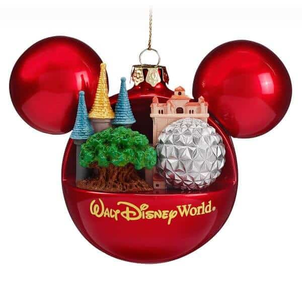This special souvenir Walt Disney World ornament adds memories from each park to your Christmas tree. Miniature sculptured icons include Cinderella Castle from Magic Kingdom Park, Tree of Life from Disney’s Animal Kingdom, Spaceship Earth from Epcot, and Hollywood Tower Hotel from Disney’s Hollywood Studios. The Mickey Icon ornament has a semi-gloss finish and golden cord for hanging.