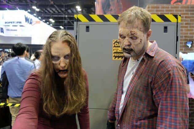 These zombies however were on the nicer side as they stopped and posed for not only these photos but also for selfies with guests to the booth. Here is some video of the zombies walking around the booth.