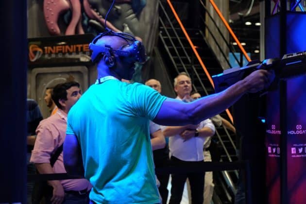 Another popular VR experience that had a line wrapped around its exterior was by Hologate. This virtual game boasted high frame rates and buttery smooth graphics. The company claimed that the use of its higher frame rate video helped eliminate motion sickness among guests.