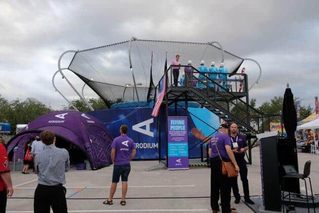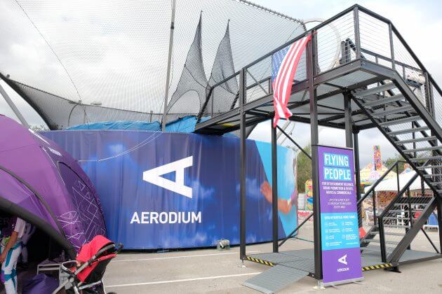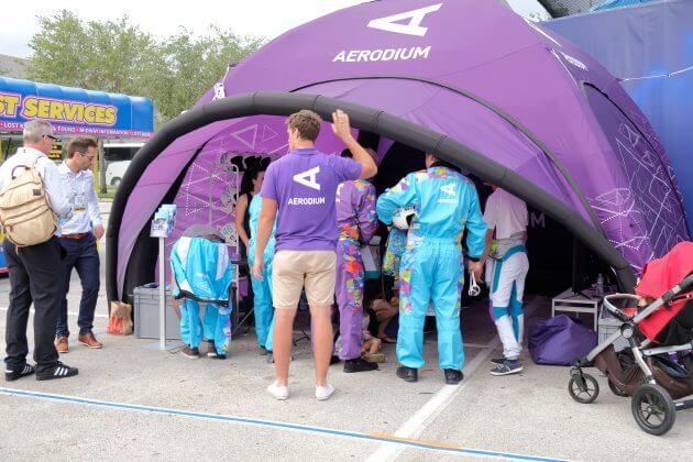 An exciting experience that took visitors to IAAPA to new heights was the Aerodium wind tunnel. The experience was set up in the outdoor section of the expo where guests to the attraction got to put on a jumpsuit and fly above the Orange County Convention Center’s parking lot. Once visitors would put on their gear, they would then watch a quick safety video and go through a short training session with the company’s representatives. After this short briefing they got to hit the skies!