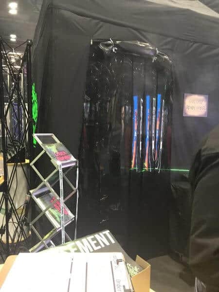 Another one of the spookier booths at the convention had to be Froggy’s Fog. The popular fog machine creator had a demo of their Laser Swamp, which can be purchased in a Deluxe Laser Swamp Package. The package includes lasers, fluid, a hazer, a spider prop, ceiling netting, wall netting and many other elements that bring this scary attraction to life.