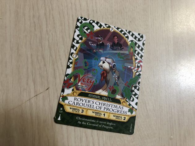 The “Rover’s Christmas Carousel of Progress” card features the famous VR-playing dog from the Carousel of Progress attraction in the park. Guests who want to receive the card are able to pick it up at the Firehouse on Main Street, U.S.A. Below is a video of the card in action during the Sorcerers of the Magic Kingdom game.