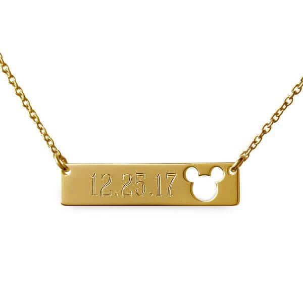 Personalized gold bar necklaces are a chic accessory, and you can put a Disney spin on yours with this Mickey Mouse version ($135). Have it engraved with a special date or wear your name in style alongside the memorable Mickey Mouse icon. The necklace is genuine sterling silver with 18K gold plating and it’s personalizable with up to 8 characters including spaces.
