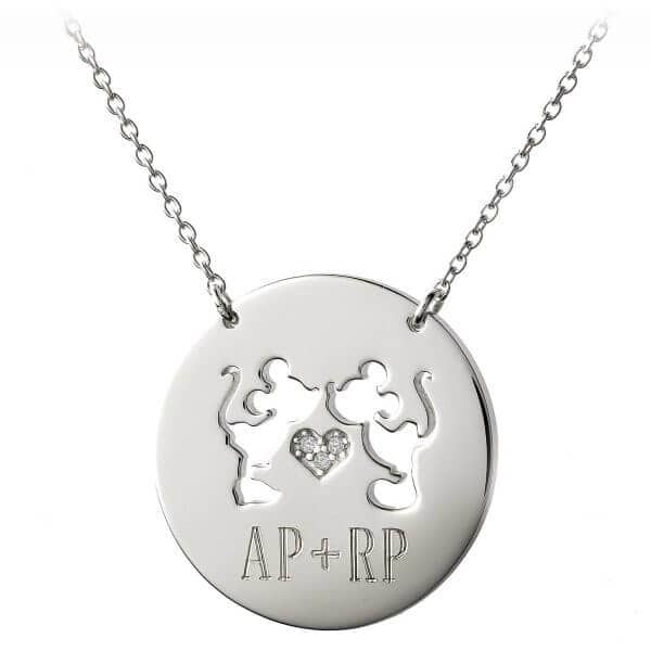 This sweet Mickey and Minne Mouse Necklace ($135) is the perfect engagement or wedding gift for the Disney-loving lady in your life. The pendant features the two lovebirds in a cutout design with a sparkling cubic zirconia heart. You can have it engraved with a special date or the couples’ initials. The genuine sterling silver necklace arrives in a lovely gift box with a bow.