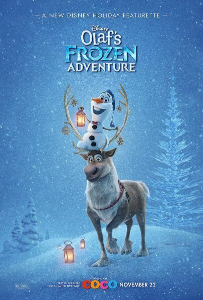 “Olaf’s Frozen Adventure” opens Wednesday, November 22nd with Disney-Pixar’s “Coco” in theaters nationwide.
