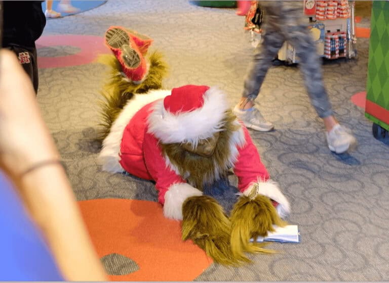 Take a look at a meet & greet experience with The Grinch featured below. In the video you can see The Grinch picking on guests and the cameraman who shot the clip.