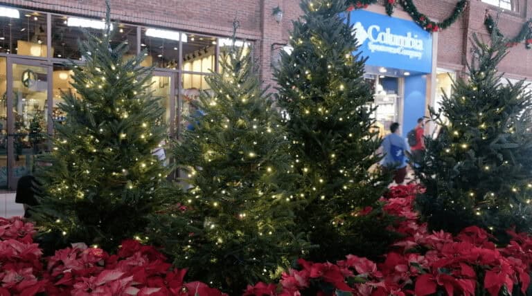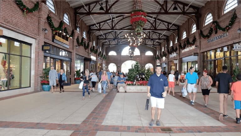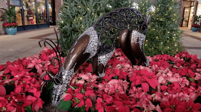 As you walk around you can’t help but feel the merriment of Christmas from garland and ornaments hung from store fronts. Some other decorations found in the center are Christmas lights and decorative wreaths.