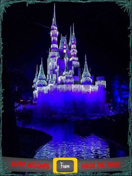 Sharing the holiday glow, today’s image shows Cinderella’s Castle (Magic Kingdom, Walt Disney World Resort, Florida) “frozen” in time as seen from the side. Brilliant ice cycles of light are complemented by a cool blue hue for this breathtaking holiday sight.