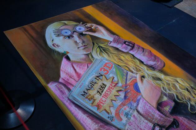 For fans who are more creative, the Expo room also featured live chalk drawing. One of the finished pieces on display was a stunning and colorful mural of Luna Lovegood. The professional artists could be seen all weekend long as they continued to draw new murals throughout each day of the celebration.