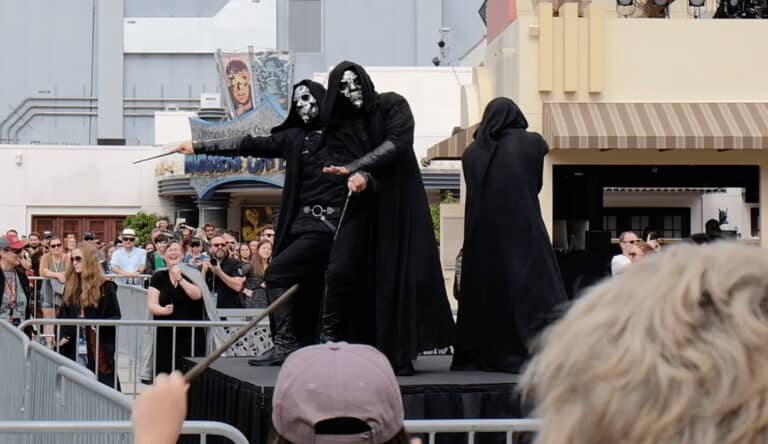 Similar to years past, Harris gave visitors to the celebration a special lesson in some of the wand movements used in the film. One special moment from this year’s Wand Combat Skills class though was when guests got to test out their newly learned wand skills on Death Eaters.