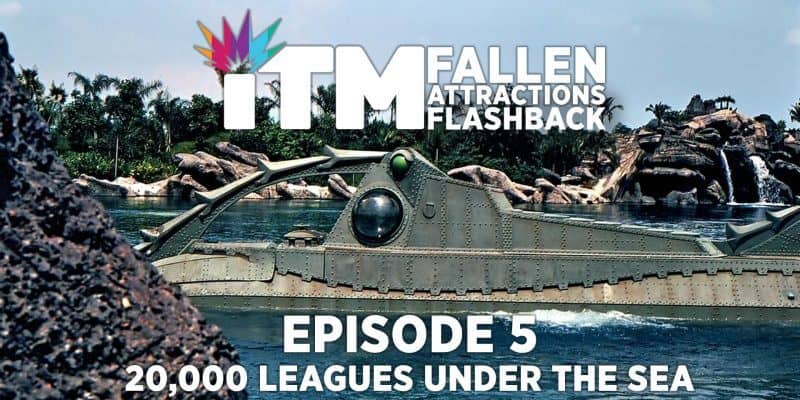 On this week’s episode we’re taking a look back at an under-the-sea journey aboard a submarine, 20,000 Leagues Under the Sea: Submarine Voyage. This attraction, which first opened back in 1971 at Magic Kingdom in Walt Disney World, was based on the famous film starring Kirk Douglas. On this subaquatic journey, guests of Magic Kingdom were taken to the deep depths of the ocean to see marine life and incredible views of the lost city of Atlantis. The attraction also included one of the more iconic scenes from the film, an attack by a giant squid.