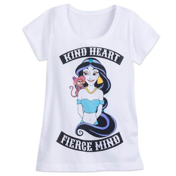 Get inspired by Jasmine of Disney’s “Aladdin” with this Jasmine and Abu Tee ($26.95). The jersey knit t-shirt features screen art of Princess Jasmine and Abu, with “Kind Heart/Fierce Mind” text. It’s a motto that applies to Disney Princesses everywhere!