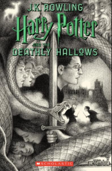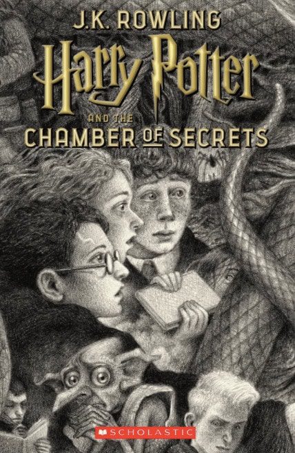 Each book in the “Harry Potter” series has a new black-and-white cover for these editions, and the artwork forms a mural when the books are placed side by side. See the mural below (click the photo to enlarge) and scroll down for a look at each individual cover.