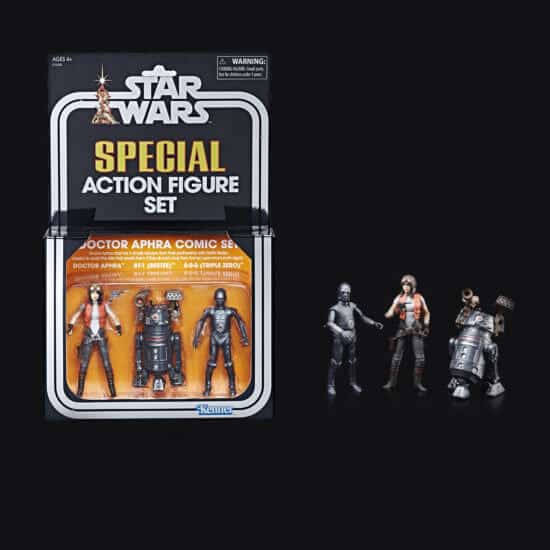 Straight from the pages of the fantastic current Marvel Comics run of “Star Wars” titles comes Doctor Aphra and her delightfully devious droid companions Triple-Zero and BT-1. Today the popular toy company Hasbro revealed its San Diego Comic-Con exclusive action figure set featuring all three characters that first made their debut in the 2015 “Darth Vader” comic series before spinning off into “Doctor Aphra.”
