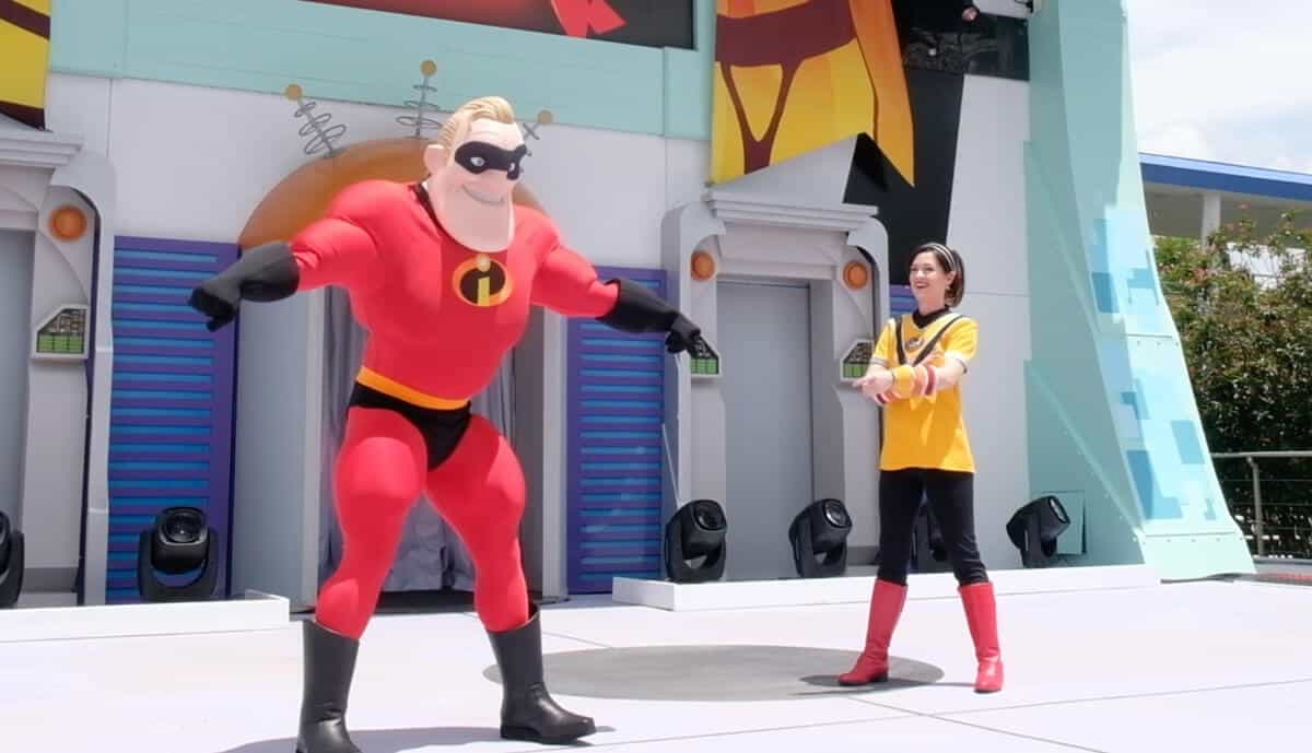 During the show, guests can expect super sound effects and music, all while enjoying interactive dances and super human entertainment. Characters in the show include Mr. and Mrs. Incredible, Frozone and for the first time, Edna Mode! The show also includes new up and coming super heroes as well.