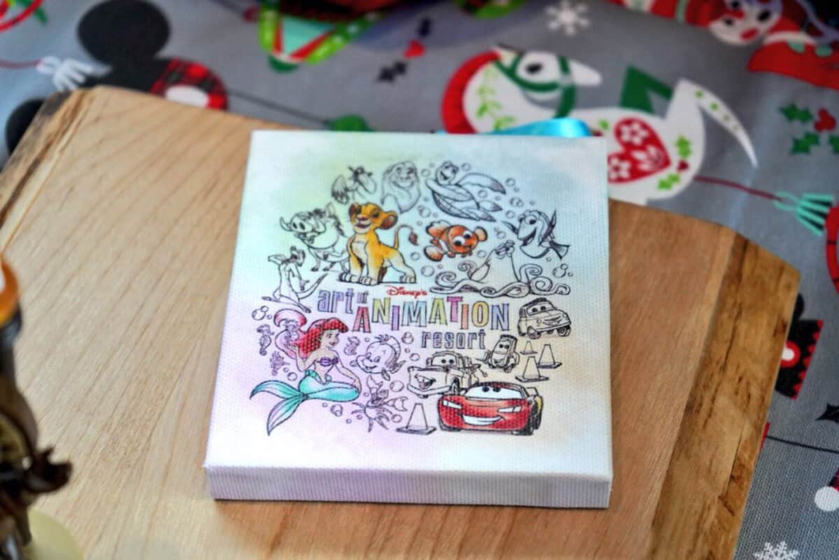 This fun Disney character filled canvas ornament is inspired by Disney’s Art of Animation Resort.