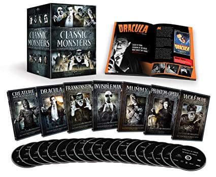 More recently, Universal offered restored versions of their haunting heavy hitters. Dracula, Frankenstein, The Mummy, The Invisible Man, The Bride of Frankenstein and the Wolf Man along with 10 hours of bonus materials found new life in Blu-ray format. That box set can still be found on Amazon both as DVD ($23.75) and Blu-Ray ($39.96).